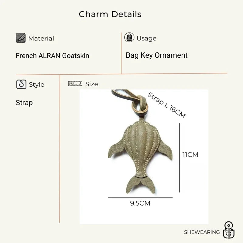The Whale Leather Bag Charm combines simplicity and artistry to create a unique accessory that resonates with elegance and character. Crafted from premium full-grain leather, each piece is handmade by artisans who value precision and timeless quality. The charming whale silhouette, complete with subtle stitched details, brings a sense of serenity and creativity to your handbag style.