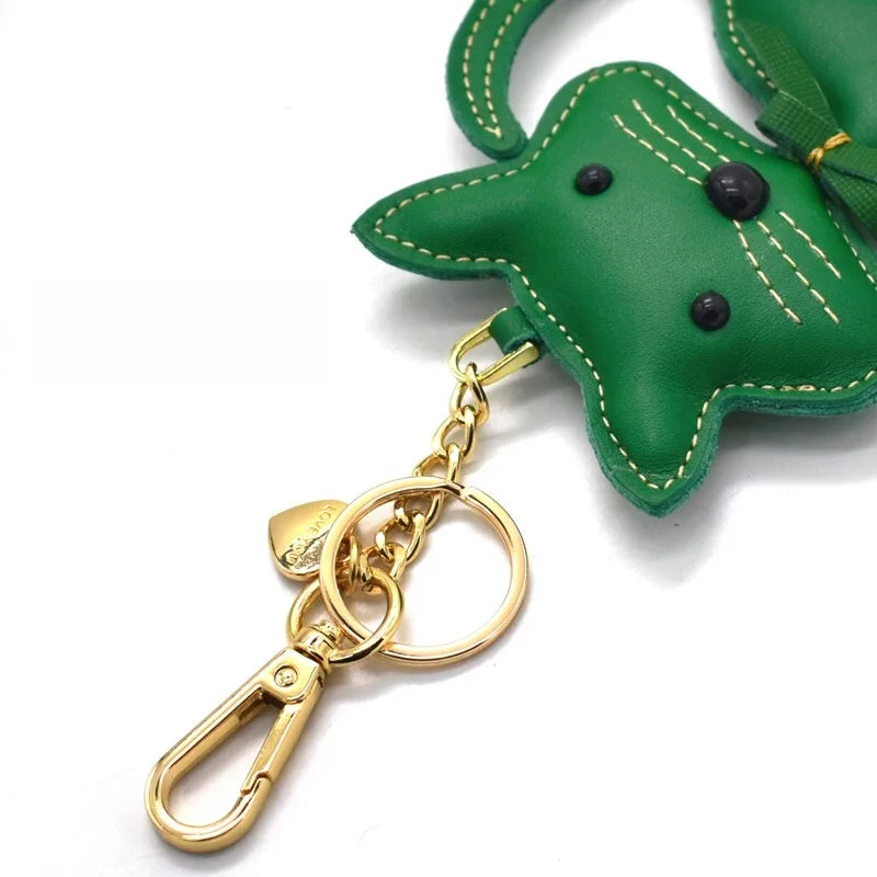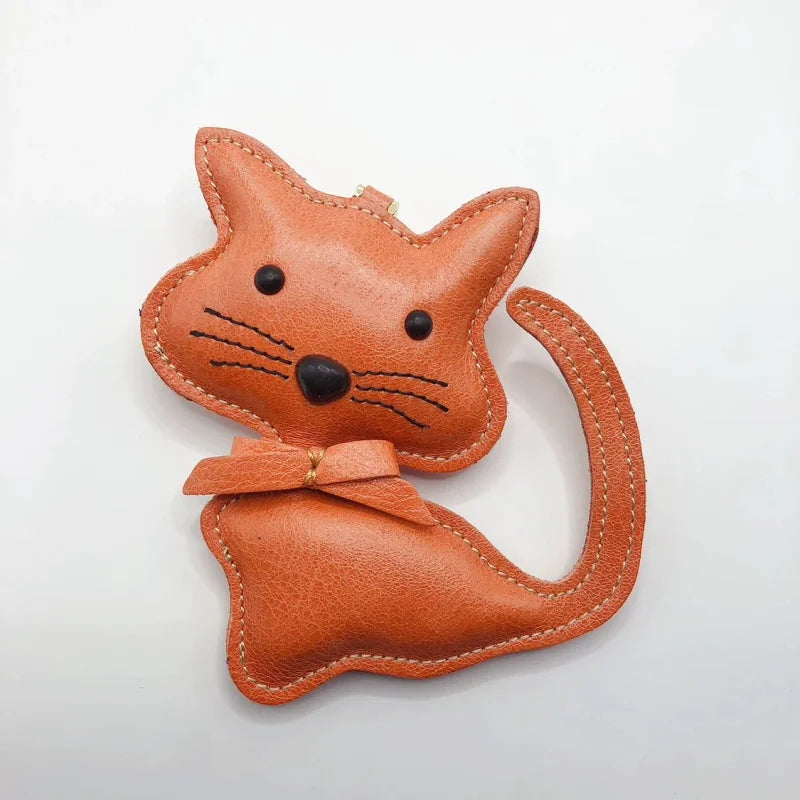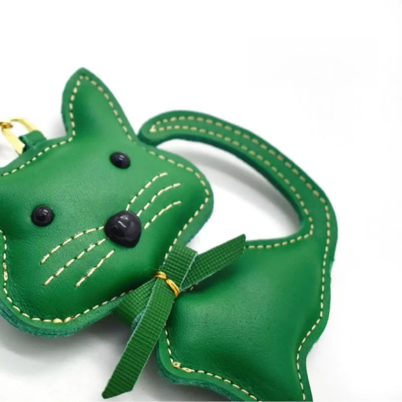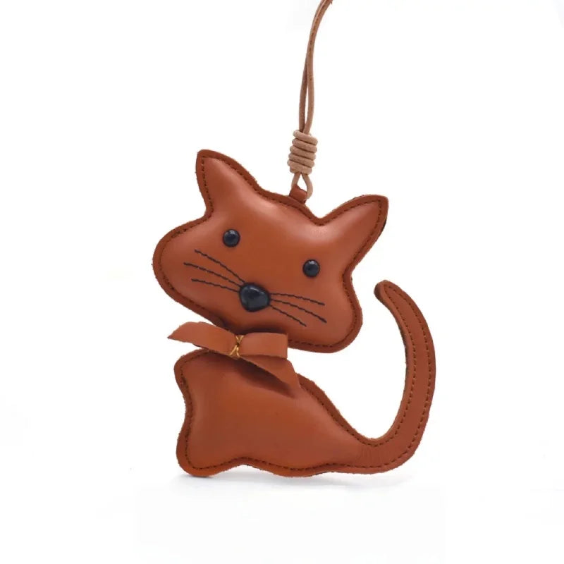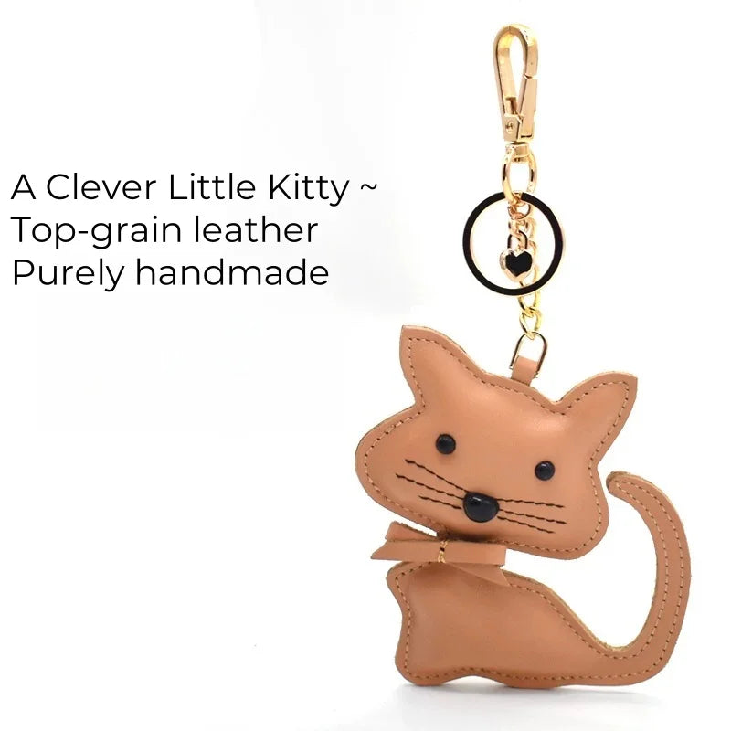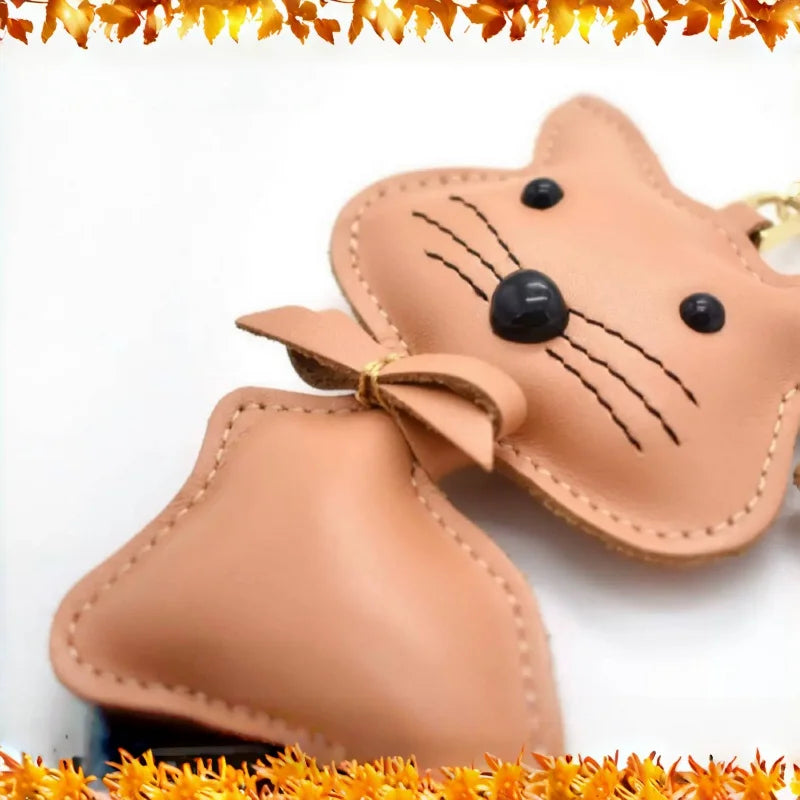 Nordic Gentle Cat Leather Bag Charm – Handmade Full-Grain Leather Keychain | Cute Animal Bookmark & Bag Pendant | Soft-Tone INS Gift for Cat Lovers