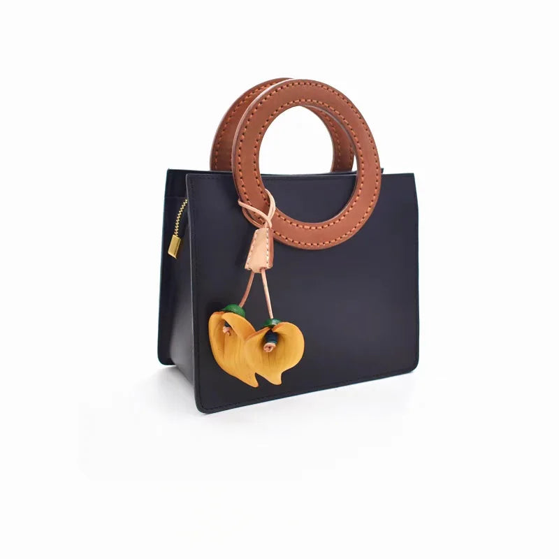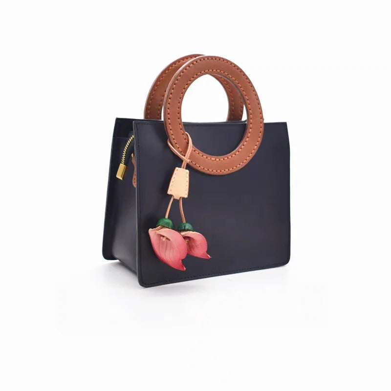 Nordic-Style Leather Lily Bag Charm – Handmade Floral Pendant for Handbags or Car Décor | Full-Grain Cowhide | Double Blossom Design | Perfect Artisan Gift for Her