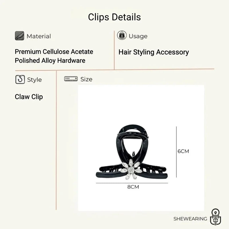 This elegant hair claw clip blends timeless structure with delicate brilliance, offering a refined accessory designed for both everyday wear and elevated styling moments. Crafted with a glossy acetate base, it features a smooth, polished surface that reflects light subtly, enhancing its depth and visual richness.