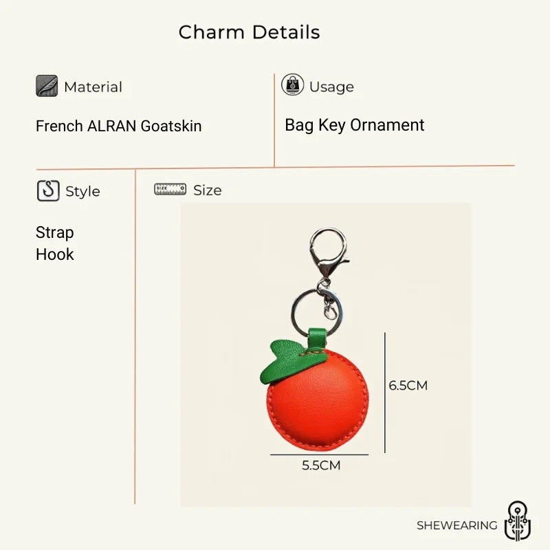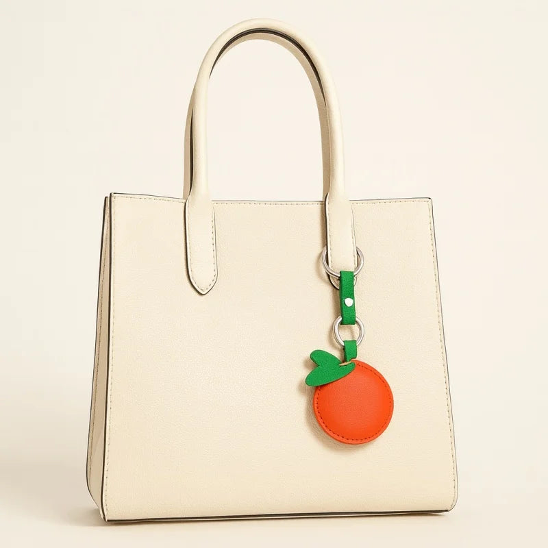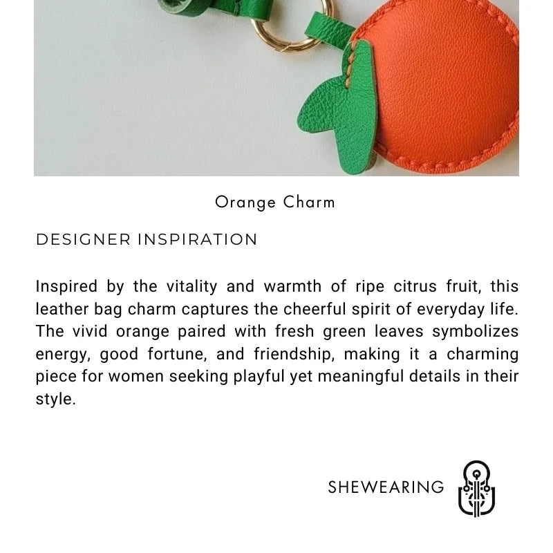 This Orange Leather Bag Charm is crafted from premium handmade cowhide, combining durability with a playful design. The round orange shape in bright, cheerful tones is accented with fresh green leaves, creating a natural and refreshing look. Carefully hand-stitched, each piece highlights artisanal craftsmanship, ensuring uniqueness and lasting quality. Designed as both a keychain and a bag charm, it is versatile for handbags, totes, or backpacks, adding a fun yet elegant detail to your daily accessories. Perfect as a gift for friends, couples, or yourself, this charm not only serves as a practical accessory but also conveys good luck and joy. Whether used for casual outings, travel, or daily work bags, it is a stylish way to showcase personality and brighten your look.