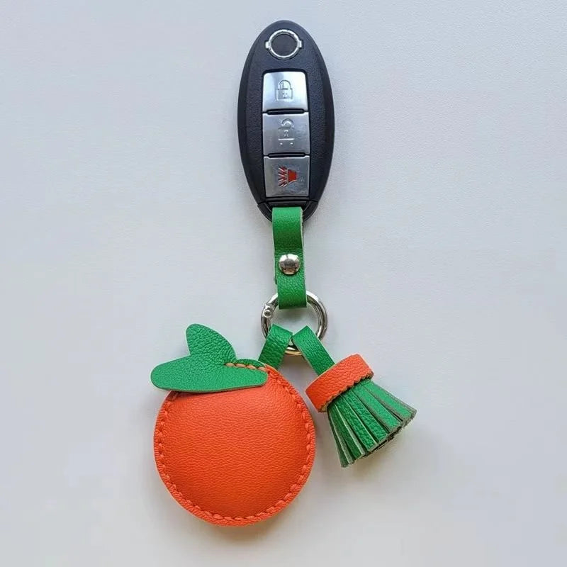 Orange Leather Bag Charm – Handmade Cowhide Fruit Pendant | Cute Citrus Keychain | Creative Couple & Bestie Gift Accessory