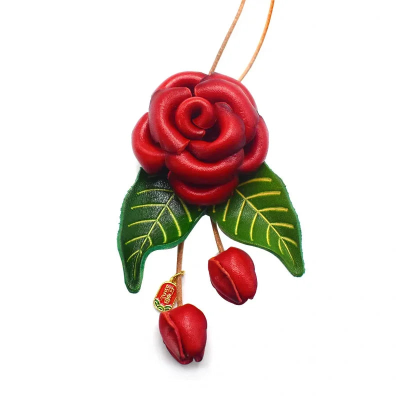 Romantic Blooming Rose Leather Bag Charm – Handmade Full-Grain Leather Flower Pendant | Artistic Accessory for Handbags | Timeless Gift for Women