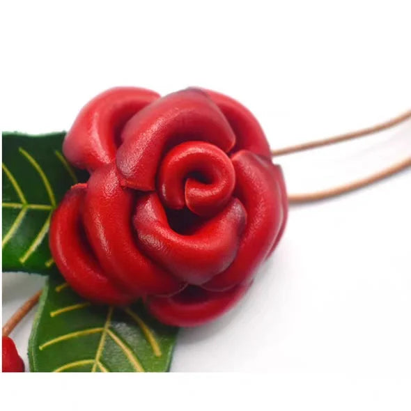 Celebrate the elegance of nature with our Blooming Rose Leather Bag Charm. Handcrafted from full-grain leather, this exquisite accessory features a vividly sculpted rose in full bloom, paired with delicate rosebuds and verdant leaves. Each element is carefully hand-dyed and shaped, offering rich texture, visual depth, and a touch of organic artistry. The 3D design makes it stand out as both a sophisticated decoration and a conversation starter. Whether used on handbags, keychains, or as a unique gift, this piece adds poetic charm to any ensemble. Measuring approximately 11cm in length, it’s the perfect expression of timeless femininity and slow-crafted luxury.
