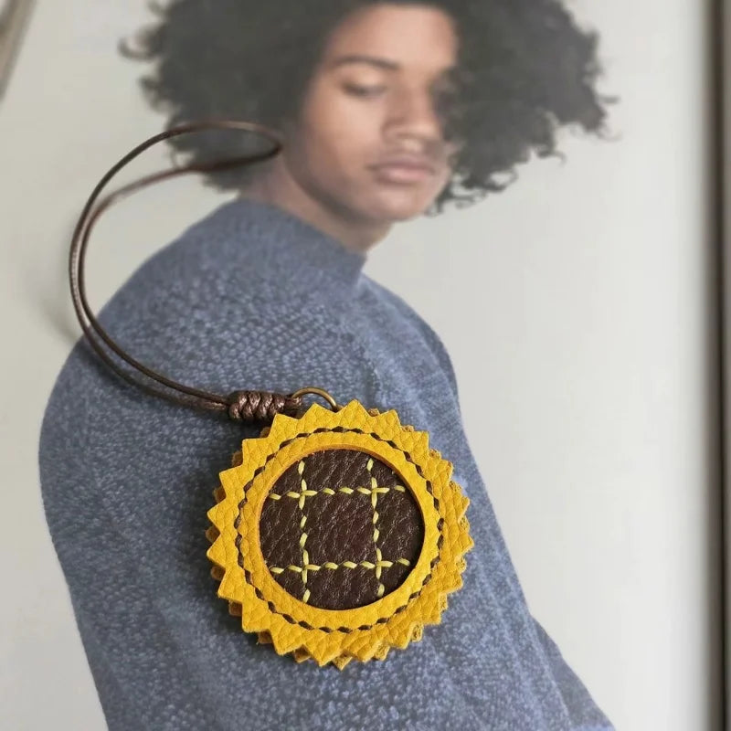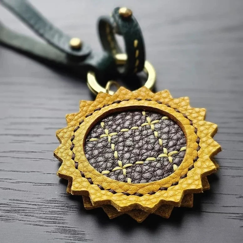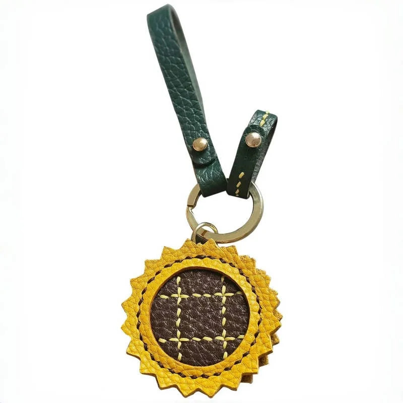 Brighten your everyday style with the Sunflower Leather Bag Charm, a handmade piece crafted from premium full-grain cowhide. Featuring a layered petal design in golden yellow paired with a rich brown textured center, this charm reflects artisanal skill and timeless charm. Each petal and stitch is carefully cut and sewn, creating a lively, three-dimensional look that celebrates nature’s beauty. The sturdy design makes it versatile for handbags, totes, or backpacks, while the attached keyring adds the option of use as a keychain. Lightweight yet durable, it is perfect for daily wear and gifting. The sunflower, long seen as a symbol of positivity and affection, makes this charm a thoughtful present for couples, friends, or anyone who loves unique, handcrafted accessories. More than just decoration, it embodies the spirit of slow fashion and artisanal craftsmanship, radiating happiness and creativity with every detail.