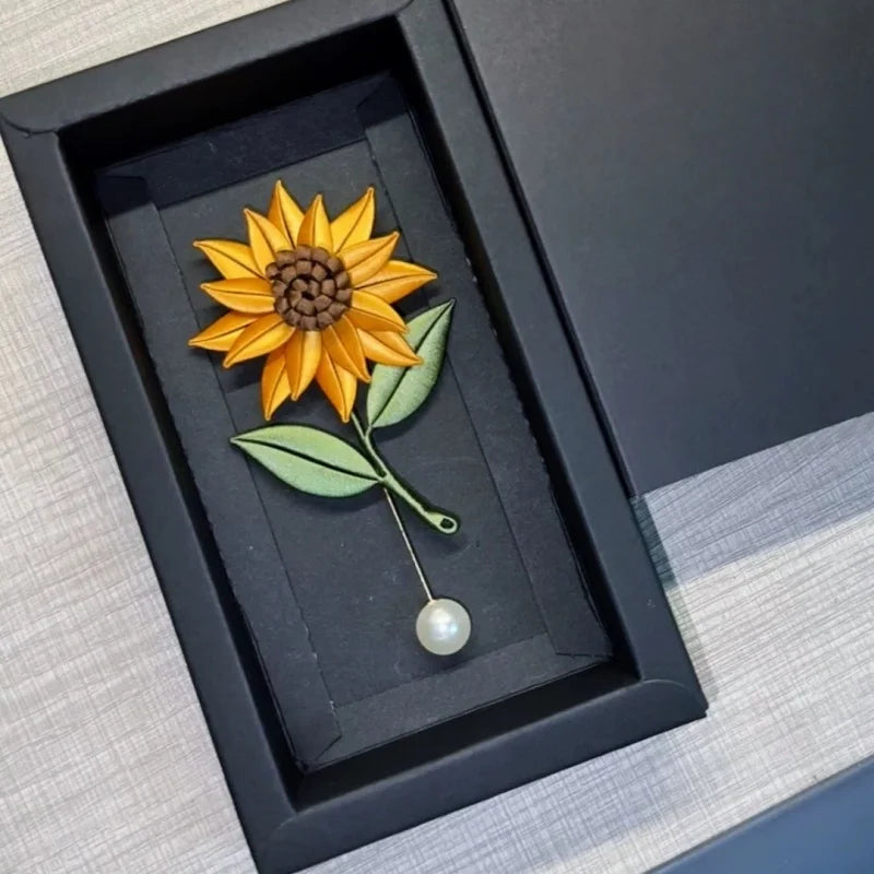This Traditional Chanhua Sunflower Brooch showcases the beauty of heritage craftsmanship in a modern accessory. Crafted using the ancient Chinese silk-wrapping technique known as Chanhua, each sunflower petal is meticulously hand-shaped from delicate silk threads, resulting in a lifelike floral design that symbolizes warmth, energy, and positivity. The vibrant yellow petals contrast harmoniously with soft green leaves, while a pearl-accented pin adds a refined touch. Lightweight yet durable, it can be worn comfortably on blazers, dresses, scarves, or hats, making it a versatile piece for both formal and casual occasions. This brooch is not only a fashion statement but also a celebration of cultural artistry, making it a meaningful gift for birthdays, anniversaries, or special events. Presented in elegant packaging, it is ready to delight any recipient who appreciates timeless beauty and craftsmanship.