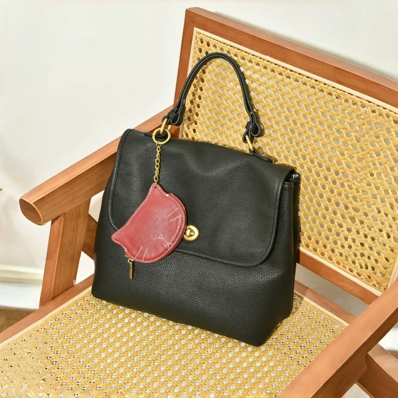 This vintage cat-shaped leather pouch charm blends form and function in a delightful way. Crafted from premium full-grain cowhide, each piece is hand-sewn with attention to detail, creating a soft and structured mini bag with a secure zipper closure. Designed for women who appreciate originality and practicality, it serves as a multi-use storage charm—perfect for coins, earphones, lipsticks, or keys. The whimsical silhouette of a cat adds a playful yet sophisticated touch to any handbag, backpack, or keyring. Its retro-inspired color blocking and compact shape make it a standout accessory, ideal for gifting or personal use. Whether you're seeking a cute yet elegant organizer or simply a conversation-starting charm, this piece offers lasting appeal and enduring quality.