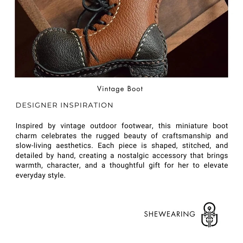 Vintage Leather Boot Bag Charm – Handmade Full-Grain Sheepskin Keychain | Retro Mini Boot Pendant for Handbags & Cars | Artisan Craft Accessory, Perfect Gift for Her