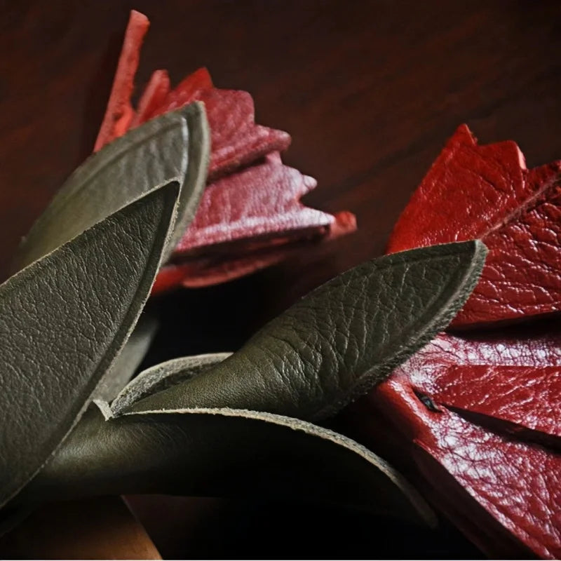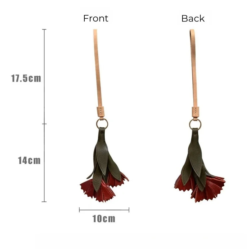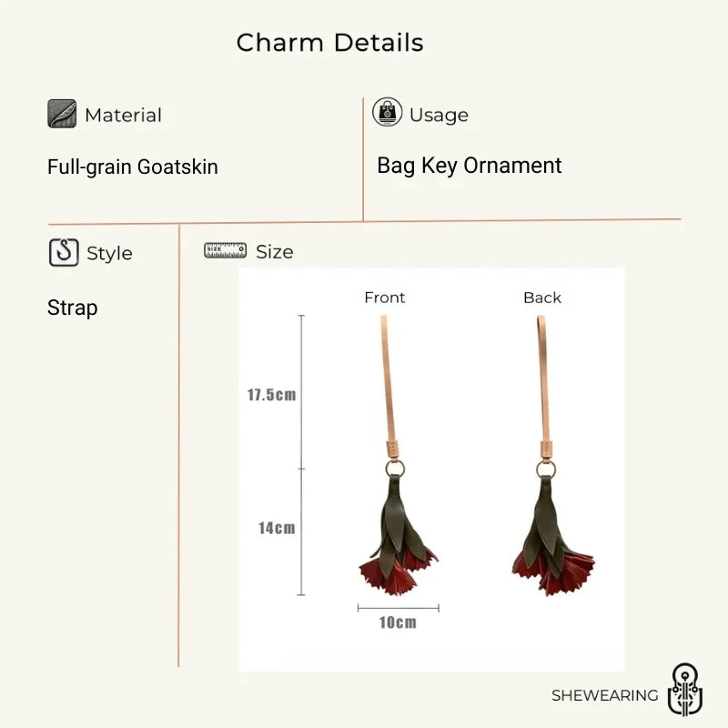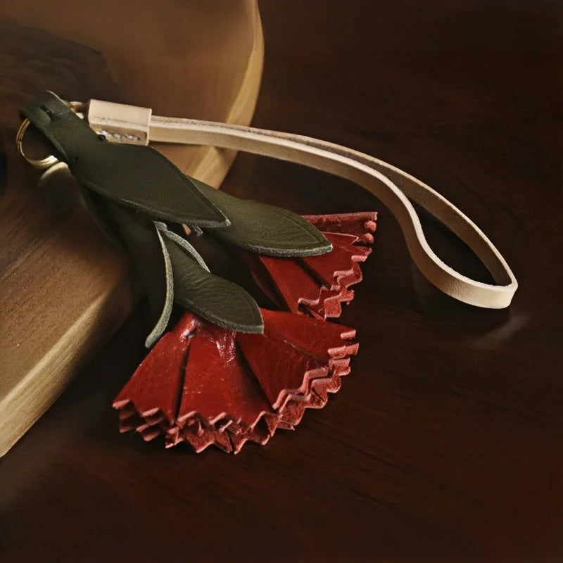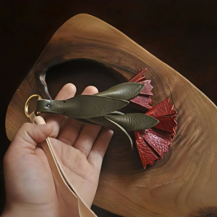 The Vintage Leather Carnation Bag Charm is a celebration of nature and craftsmanship. Expertly handcrafted from premium full-grain cowhide, it captures the lifelike form of a blooming carnation with carefully layered green leaves and textured red petals. The 3D design adds depth and elegance, making it a standout accessory for handbags, totes, or keychains. Each petal is hand-cut and stitched with precision, highlighting the artisanal quality and durability of genuine leather. Beyond its decorative appeal, the carnation carries symbolic meaning—representing love, admiration, and gratitude—making it a thoughtful gift for women on special occasions. Its versatile style blends seamlessly with modern or vintage aesthetics, making it a unique piece to complement everyday fashion while adding a personal touch of artistry.