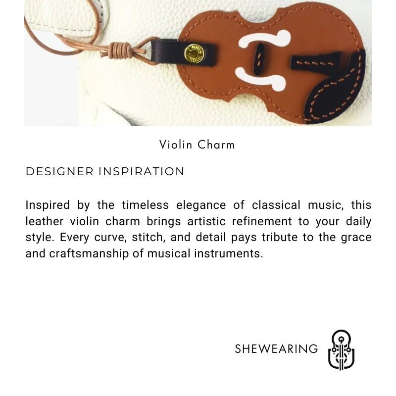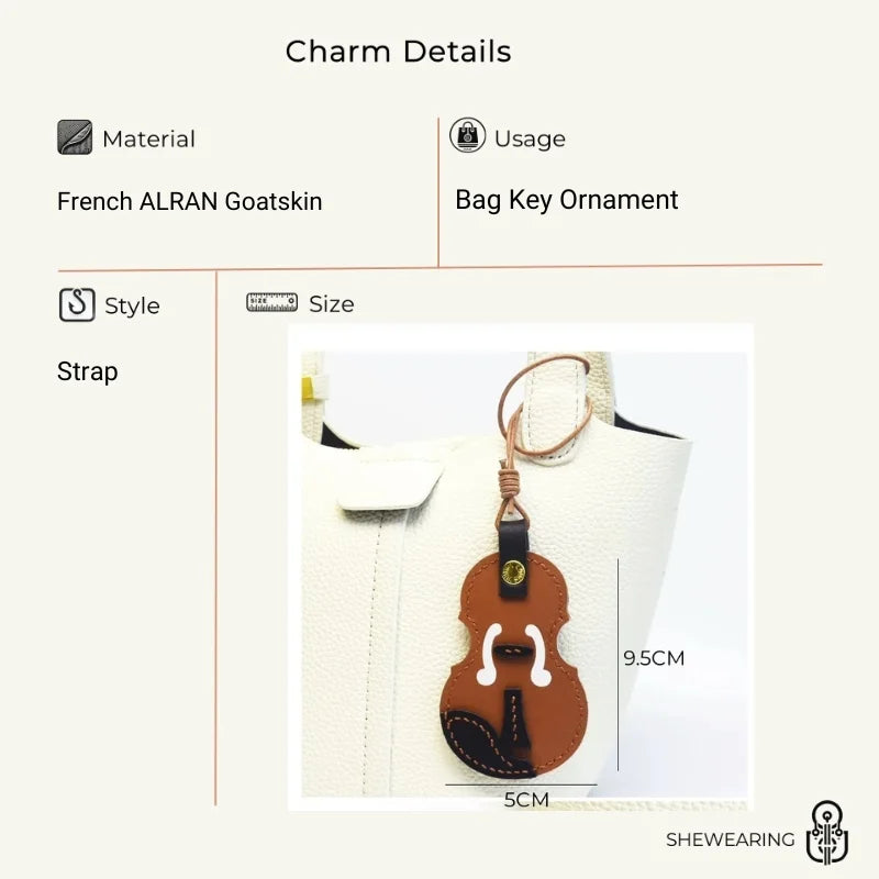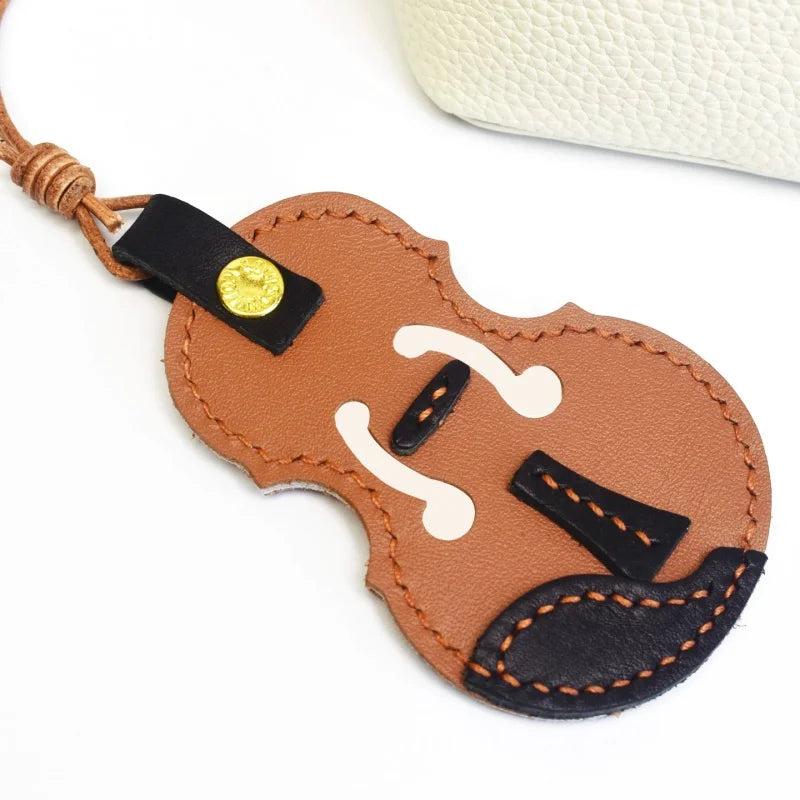 Vintage Violin Leather Bag Charm – Handmade Full-Grain Cowhide Pendant | Classical Music-Inspired Keychain for Bags | Retro Artisan Gift